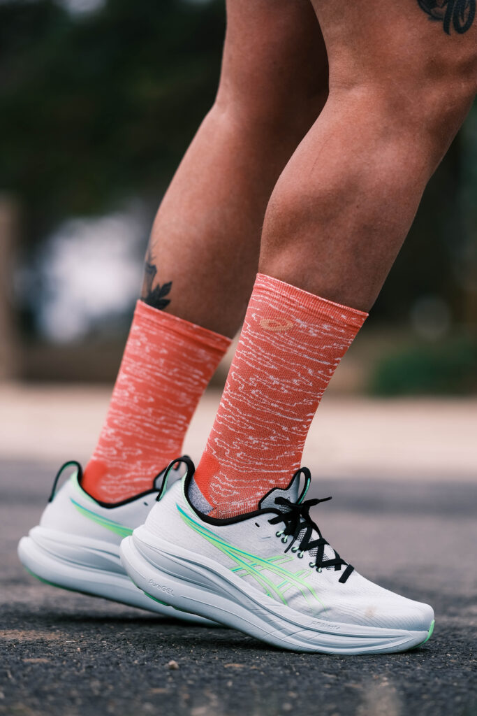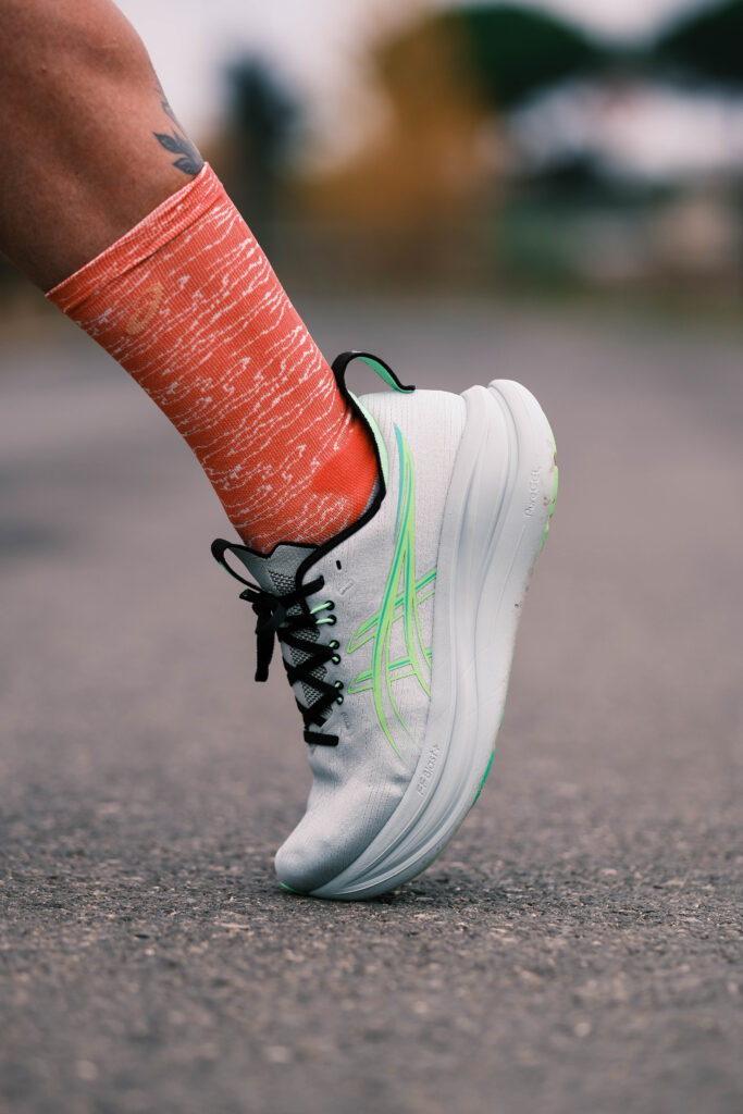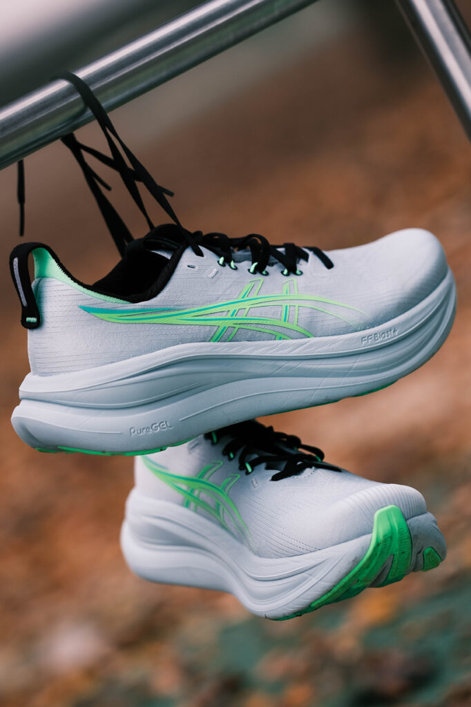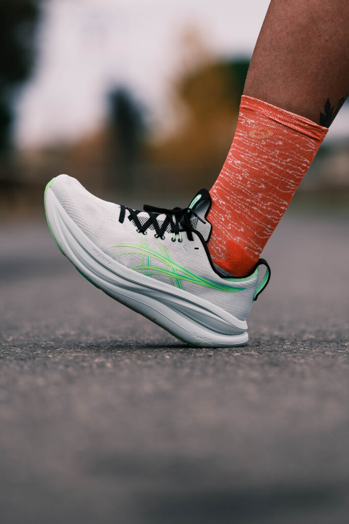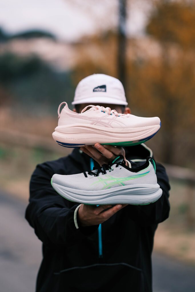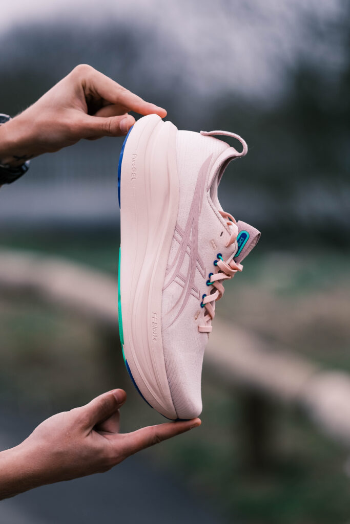 Lors de nos tests comparatifs, l’allégement se fait clairement sentir. ASICS a retiré environ 20 g par chaussure sans toucher au confort, et sur le terrain, cette différence n’est pas anecdotique : lors de nos sorties longues, la course paraissait plus fluide et moins fatigante, surtout après 15‑20 km.