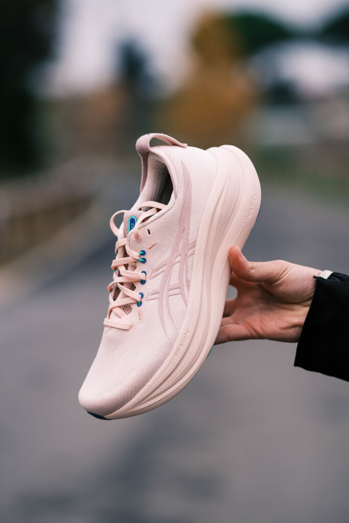 La ASICS Gel-Nimbus 28 confirme sa place de référence dans le segment des chaussures confort route. Elle affine les points forts de la version 27 avec une légèreté accrue, une meilleure respirabilité et une adhérence renforcée, tout en conservant un amorti moelleux et très protecteur.
